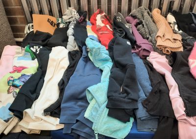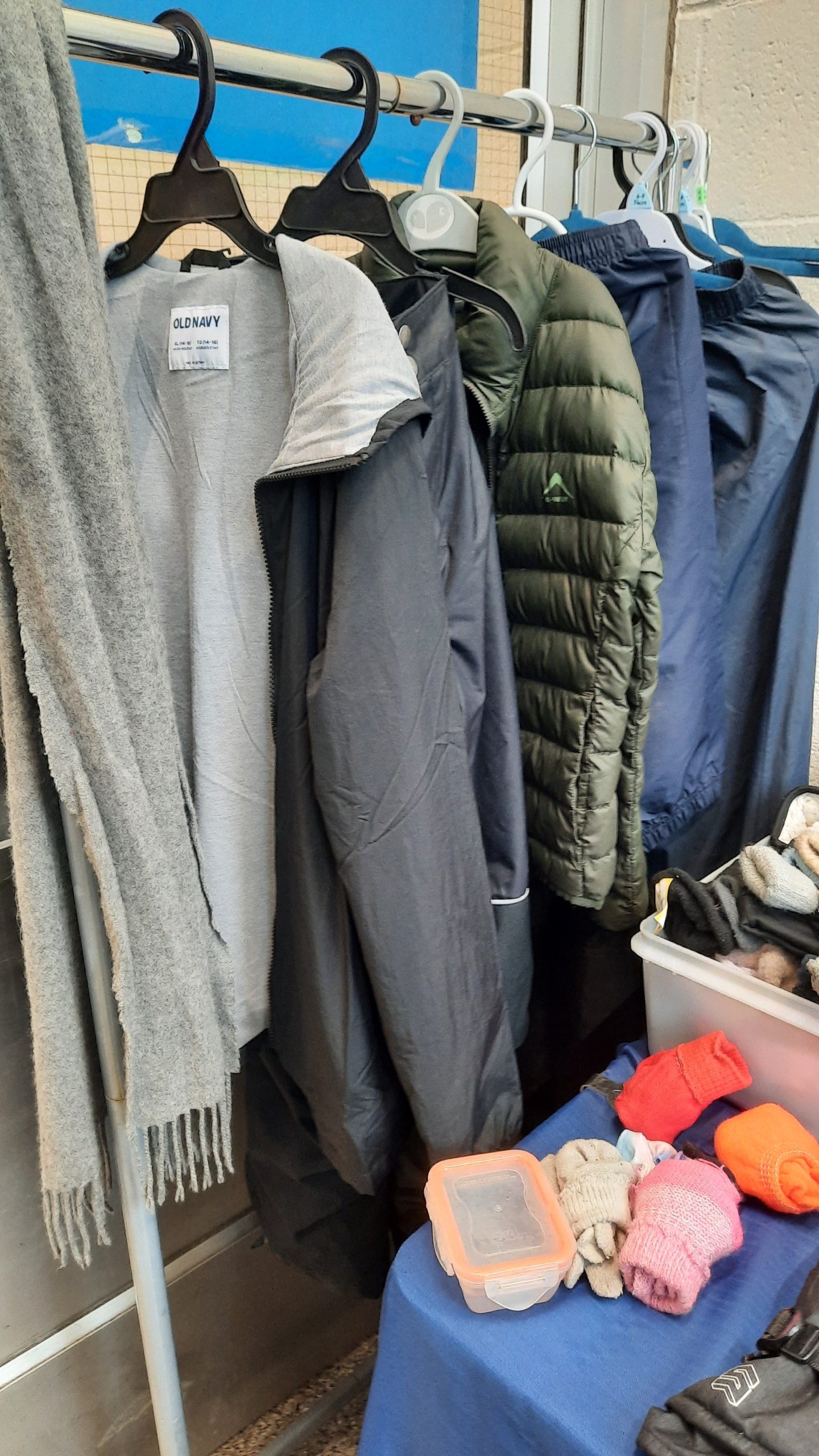 Anything that has been on the Lost & Found table longer than 2 weeks will be left in the big grey plastic box under the tables. Once every 4 weeks, a team of volunteers will come and collect those items to give away in the community.
